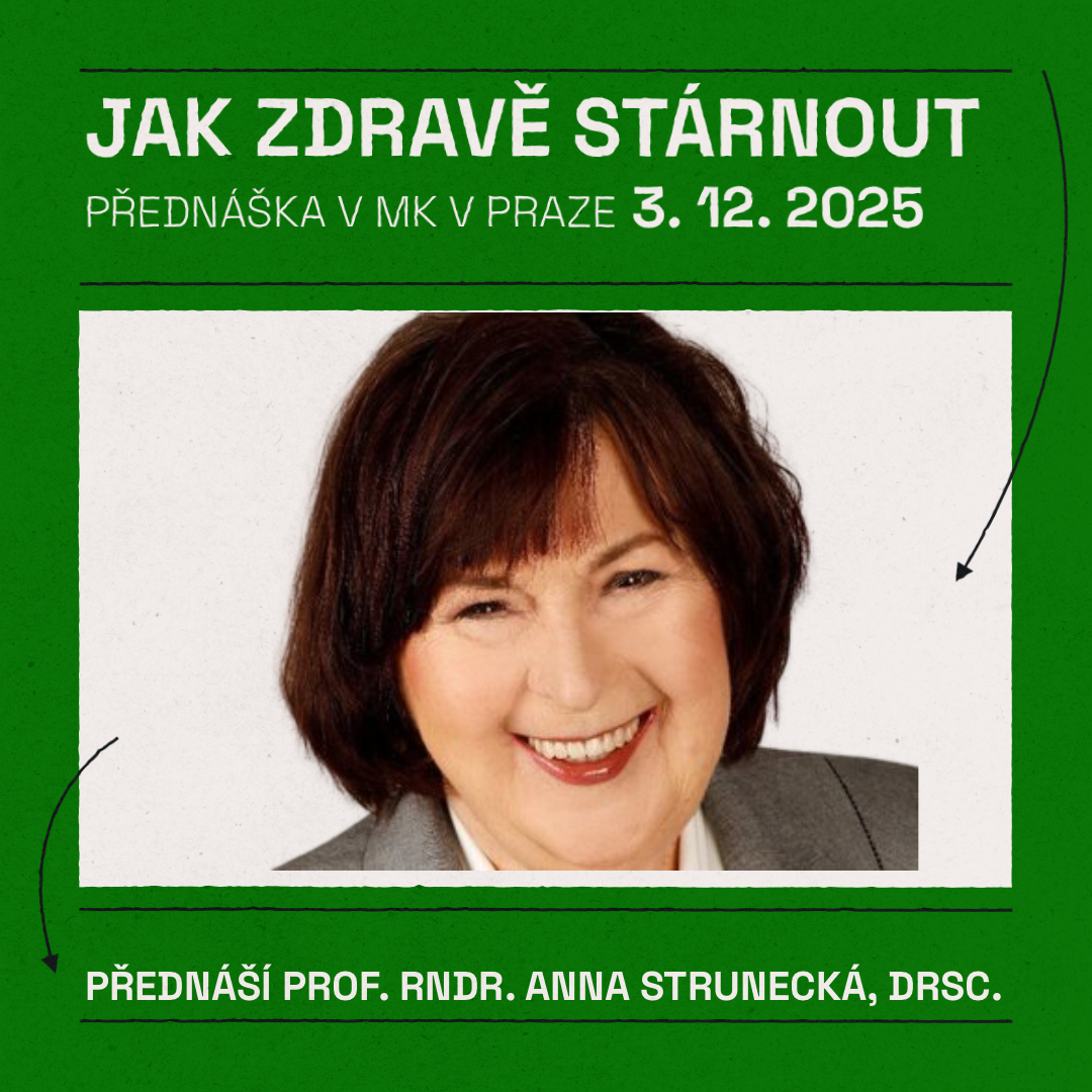 Jistě znáte aspoň jednu babskou radu, jak dosáhnout dlouhověkosti a posilovat svou vitalitu. Pojďme se spolu podívat na to, jak to v našem těle funguje a jak je to s našimi hormony, které mají vliv na naše stárnutí. Dozvíte se, jak podpořit přirozenou hormonální rovnováhu? Jak si udržet zdravou paměť a bystrou mysl a pokusit se tak prevencí a pravidelnou diagnostikou předejít Alzheimerově nemoci. Jak si udržet vitalitu co nejdéle a jaké jsou nejdůležitější vitamíny, minerály a doplňky pro zdravé stárnutí. Ve spolupráci s časopisem Meduňka.Přednáší Prof. RNDr. Anna Strunecká, DrSc. Kde Ústřední knihovna – MALÝ SÁL Kdy 3. 12. 2025 | 17:00 Vstupenky a více informací zde