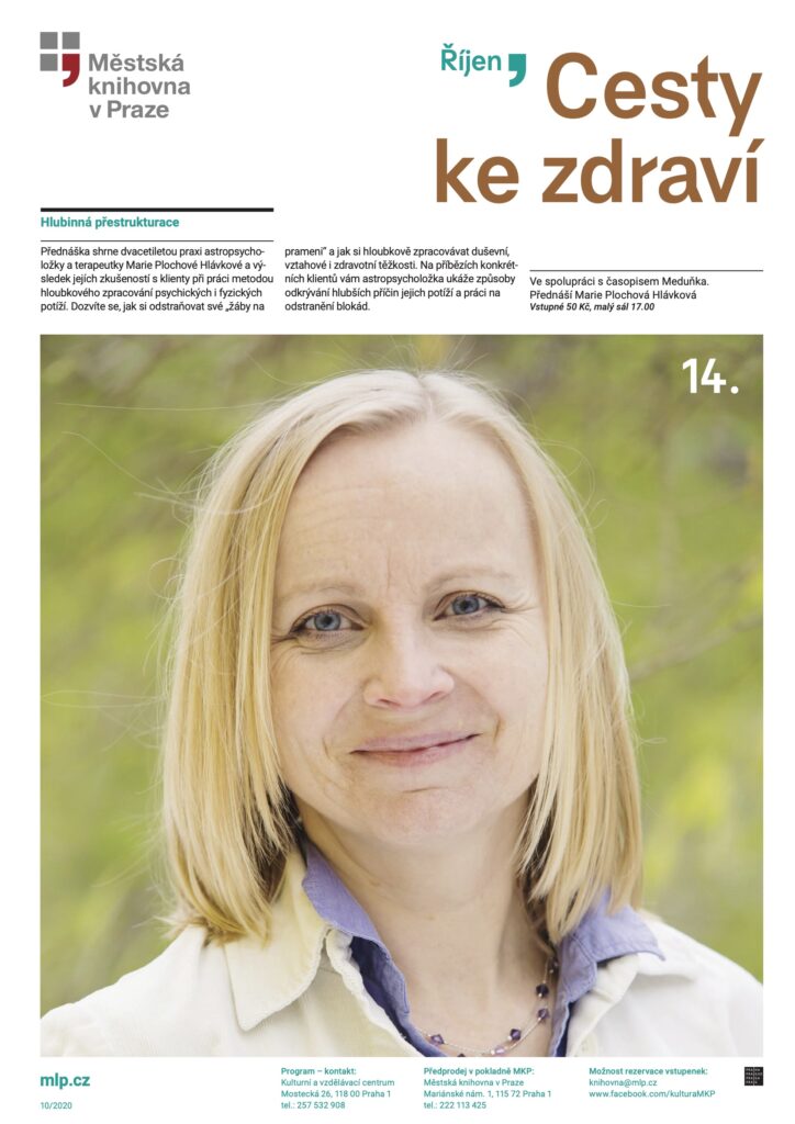 I v říjnu se můžete zúčastnit přednášky z Meduňkového cyklu, tentokrát bude přednášet Marie Plochová Hlávková na téma Hlubinná přestrukturace.