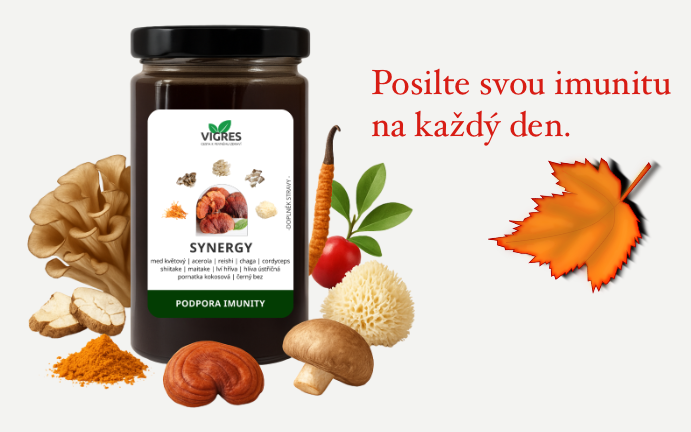 SYNERGY – nabitá směs hub, bylin a vitaminu C v medu. SYNERGY spojuje vitální houby a byliny do směsi, která dlouhodobě chrání organismus a dodává energii. Dopřejte si stabilitu a jistotu silného zdraví. ✅ Podpora imunity✅ Obnova energie✅ Rovnováha těla i mysli 🍯 Denní dávka ≈ 25 Kč • kúra na 3 měsíce Při zadání slevového kódu MEDUNKA můžete nakoupit výhodněji. Platí na všechny výrobky.